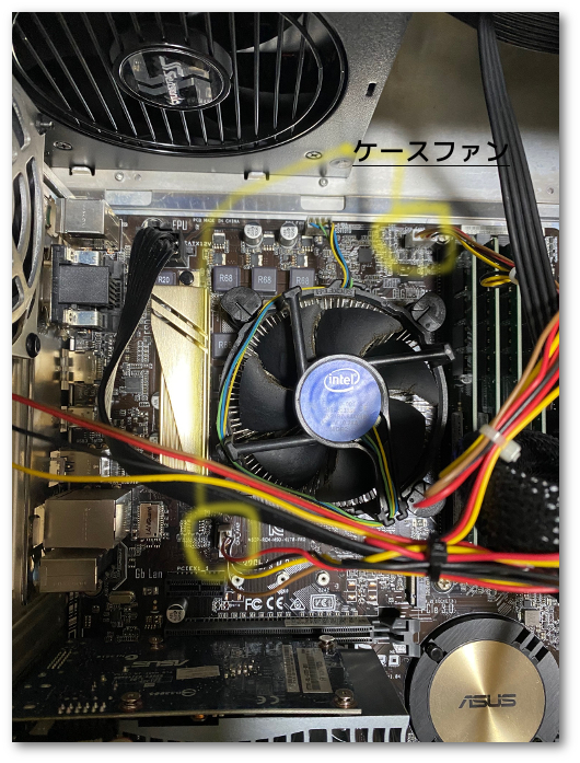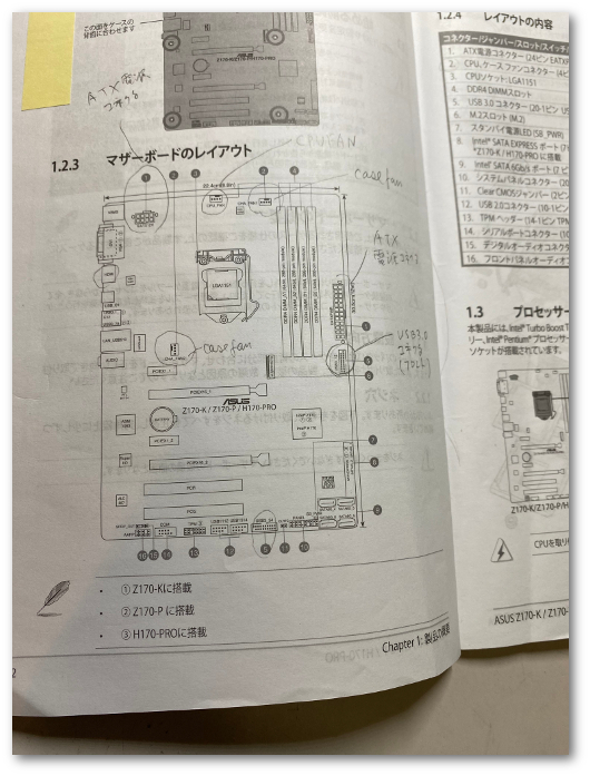 2番目の写真は少し前のマザーボード「H170-PRO」のレイアウト。通常PWMのコネクタはCPUファンと2つのケースファンの計3つが配置されている。