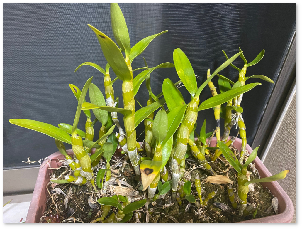 デンドロビウムのプランタは冬の間じゅうビニールシートをかぶせておいたが、先日はずした。