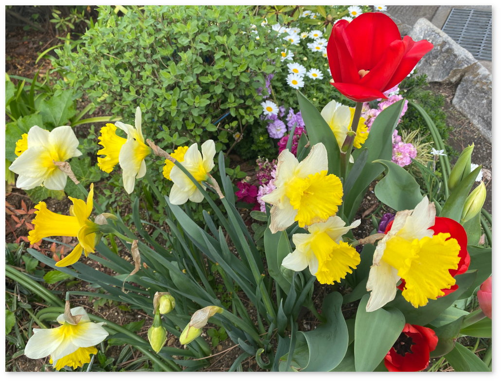 いつのまにか初春の花々は満開を過ぎている種類もある。