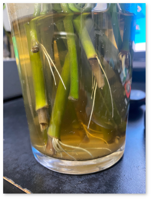 水につけておいたミルクブッシュからたくさん根が出てきた