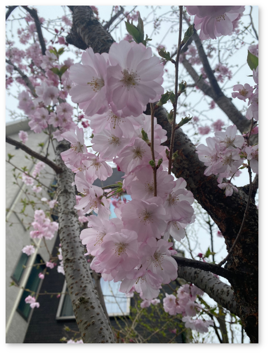 日中は天気が悪くなって雨が降ったが、ここ数日とは別の場所で朝方に桜の花の写真を撮った。