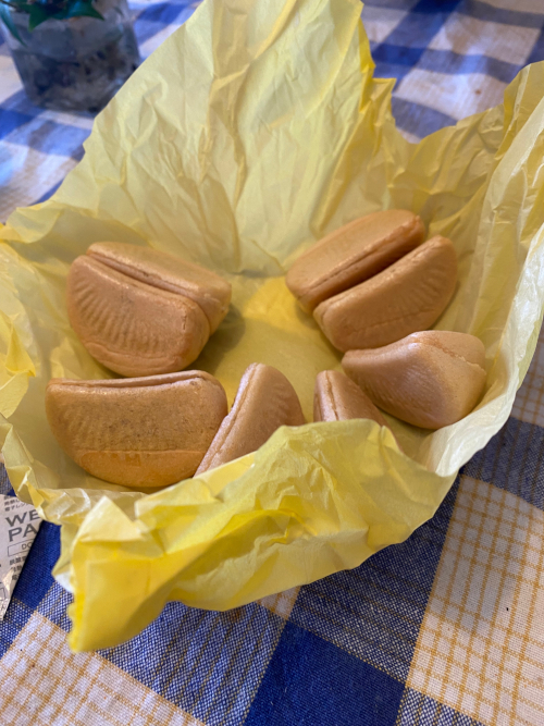 みかんの房のような最中で、みかんの香りがしておいしかった。