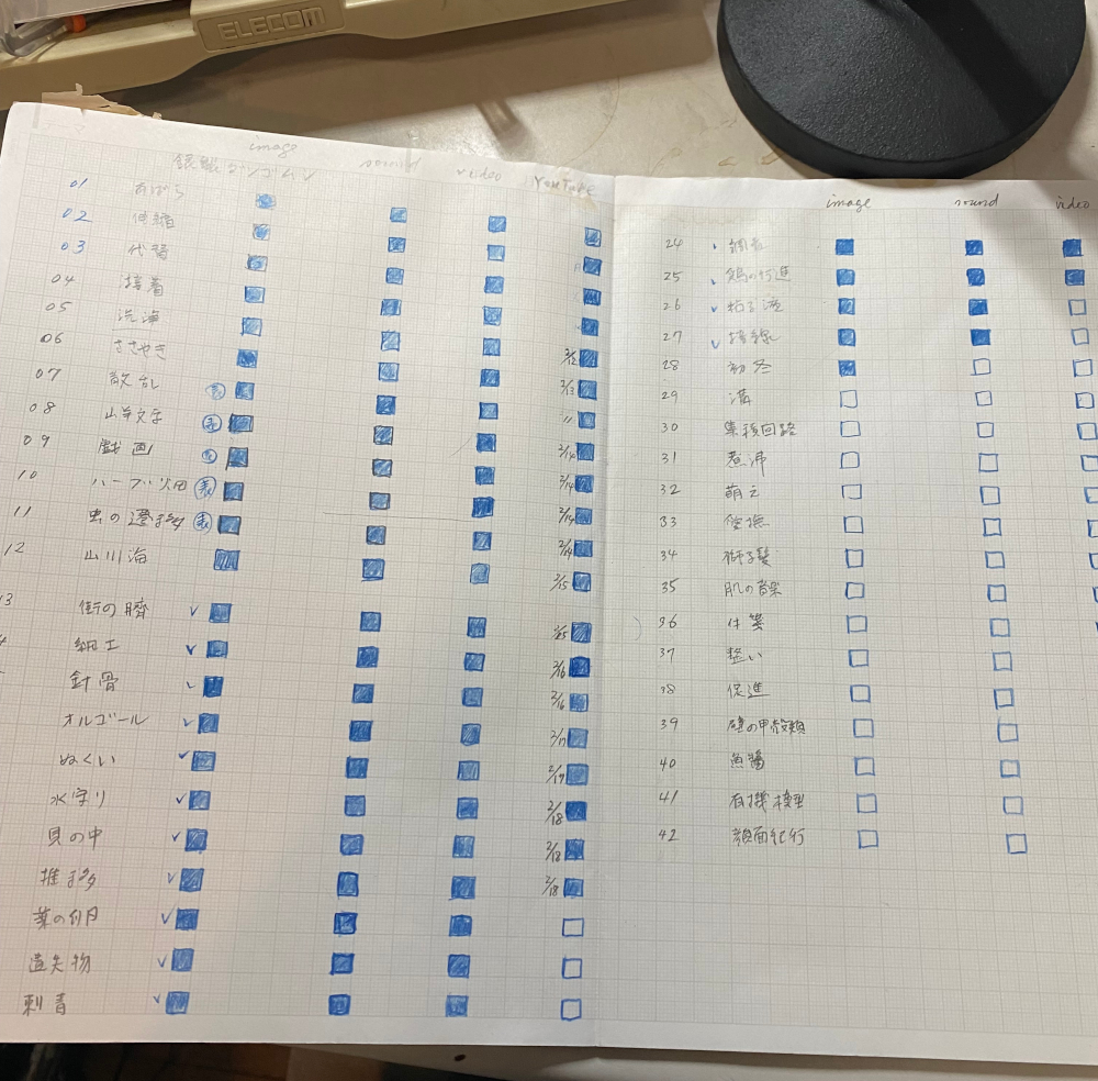 『銀製ダンゴムシ』の詩の朗読を1編1ファイルにしてYouTubeにアップロードしている。やり方に慣れてきたが、たくさんあるので下のような表を作っている。