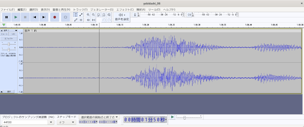 Audacityで「Ctrlキー+マウスホイール」で波形を拡大できることがわかった。