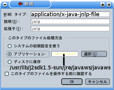 「MIMEタイプ」に、「application/x-java-jnlp-file」
