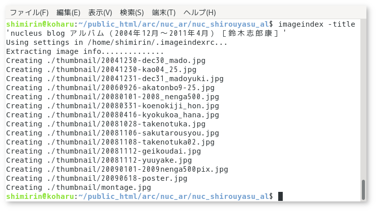 imageindexはperlのプログラムで、コマンドラインからディレクトリ中の画像ファイルをHTML形式でアルバムにする。